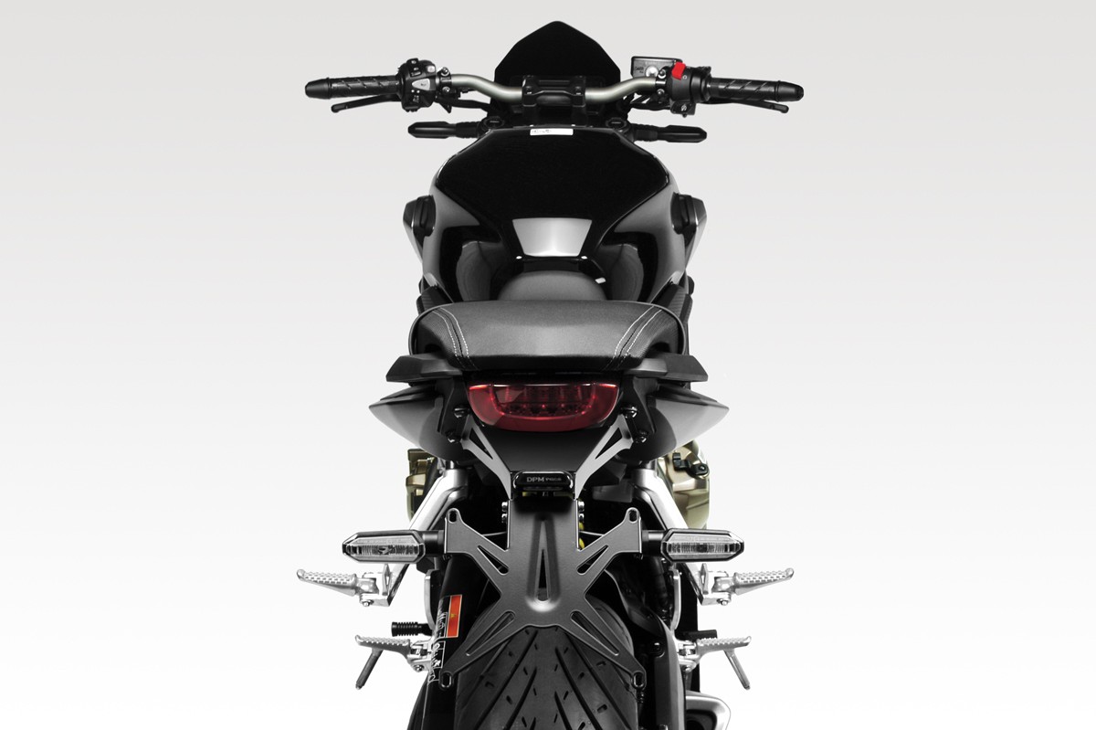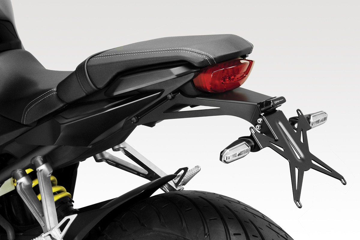 Complete with LED plate light E11 approved, assembly instructions, and hardware fasteners, the kit offers the possibility of reusing the original indicators and it is applied without making any changes to the bike.