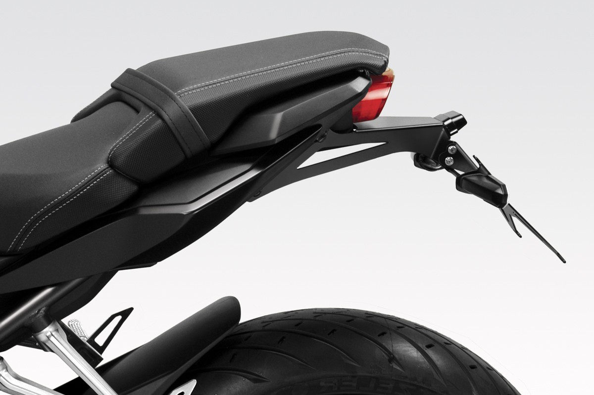 Completo di luce targa a led omologata E11, istruzioni e minuteria offre la possibilità di riutilizzare gli indicatori di serie e si applica senza apportare nessuna modifica alla moto.