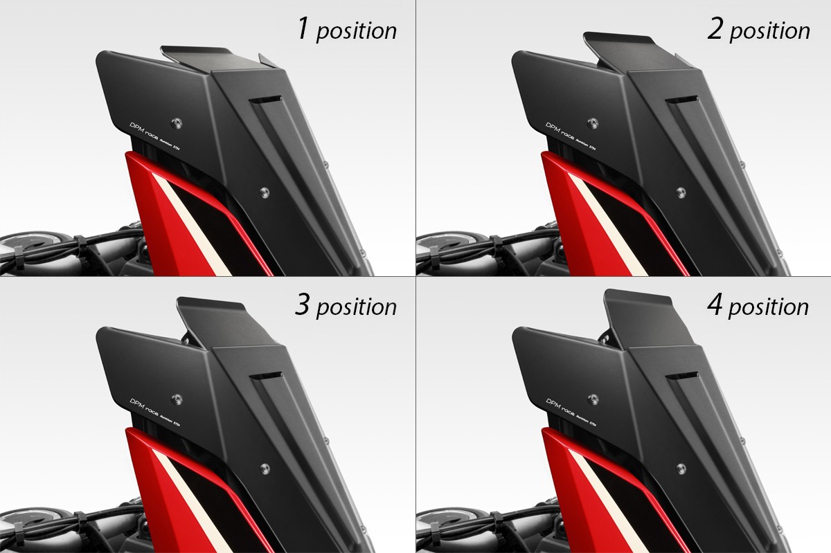 Questo speciale cupolino per uso sportivo realizzato in alluminio 5754 verniciato a polveri, offre la possibilità di ruotare il deflettore in quattro diverse posizioni con bloccaggio automatico a scatto.