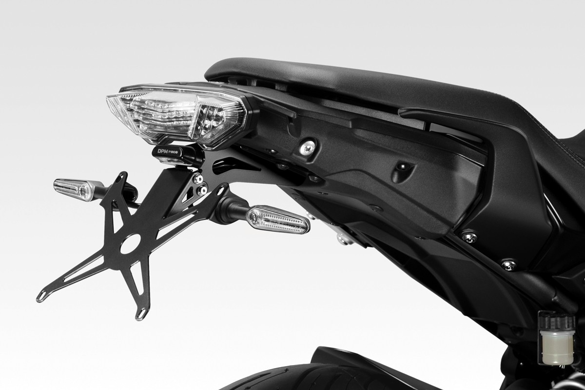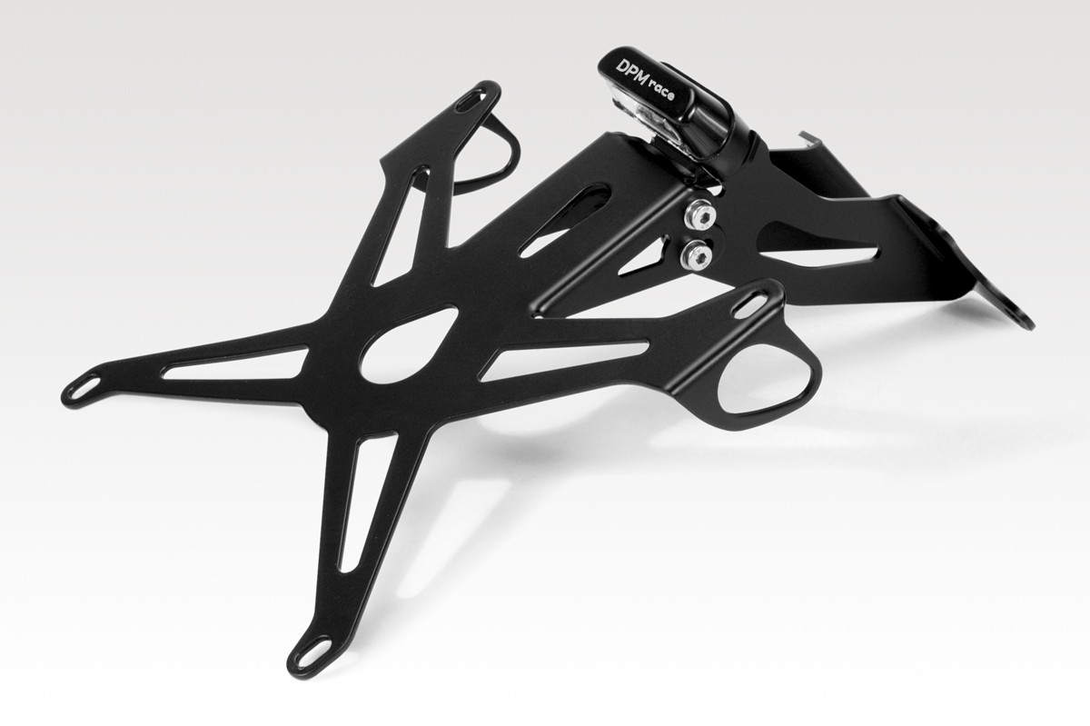 Prodotto specifico ad inclinazione variabile da 30° in sù con bloccaggio in 4 punti. Completo di luce targa a LED omologata E11, minuteria e istruzioni di montaggio. Predisposto all'applicazione degli indicatori di serie, si applica senza apportare nessuna modifica alla moto.