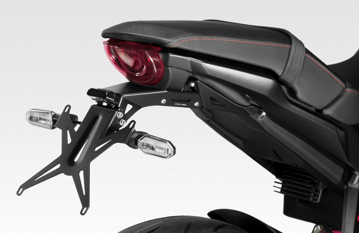Completo di di luce targa a led omologata E11, istruzioni e minuteria offre la possibilità di riutilizzare gli indicatori di serie e si applica senza apportare nessuna modifica alla moto.