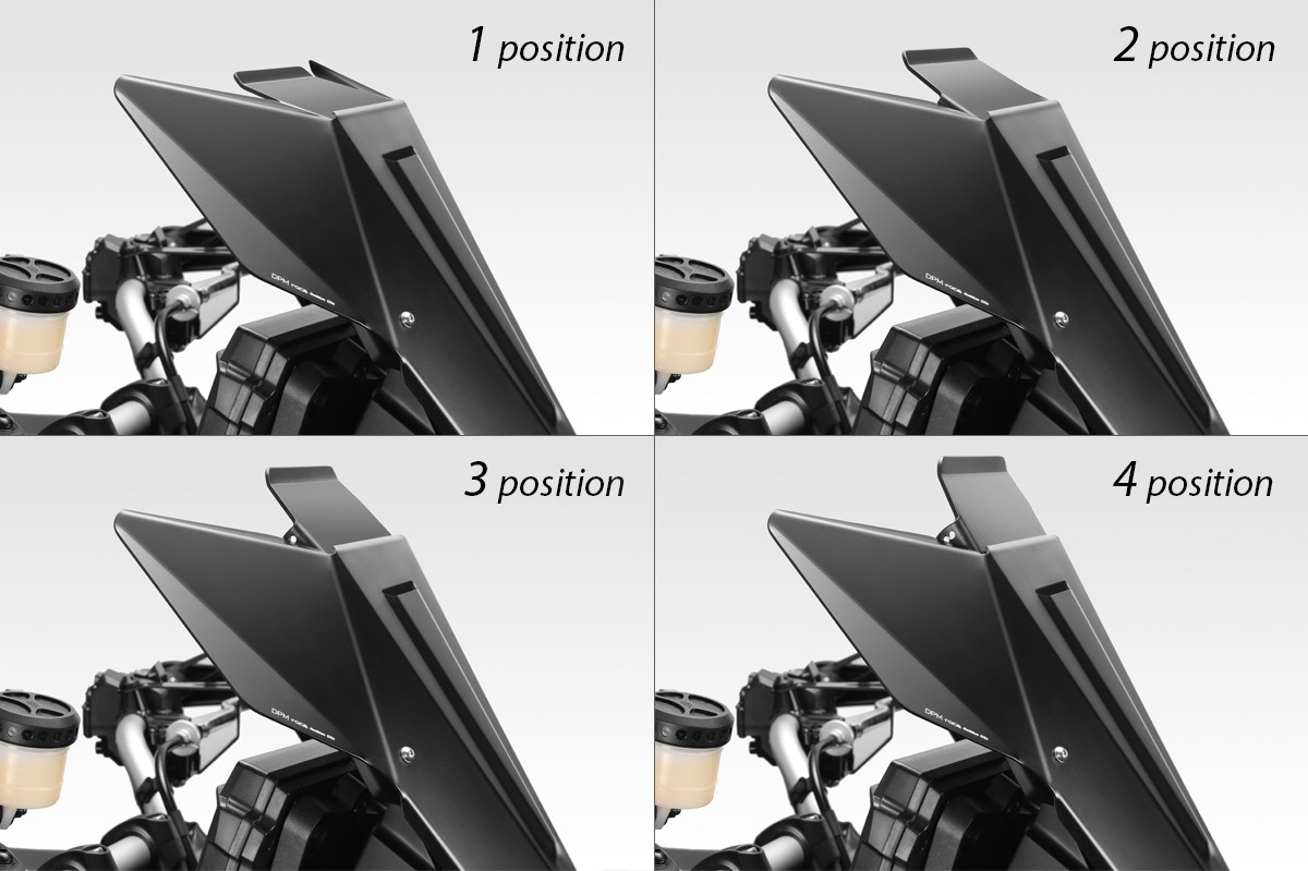 Questo speciale cupolino per uso sportivo realizzato in alluminio 5754 verniciato a polveri, offre la possibilità di ruotare il deflettore in quattro diverse posizioni con bloccaggio automatico a scatto.