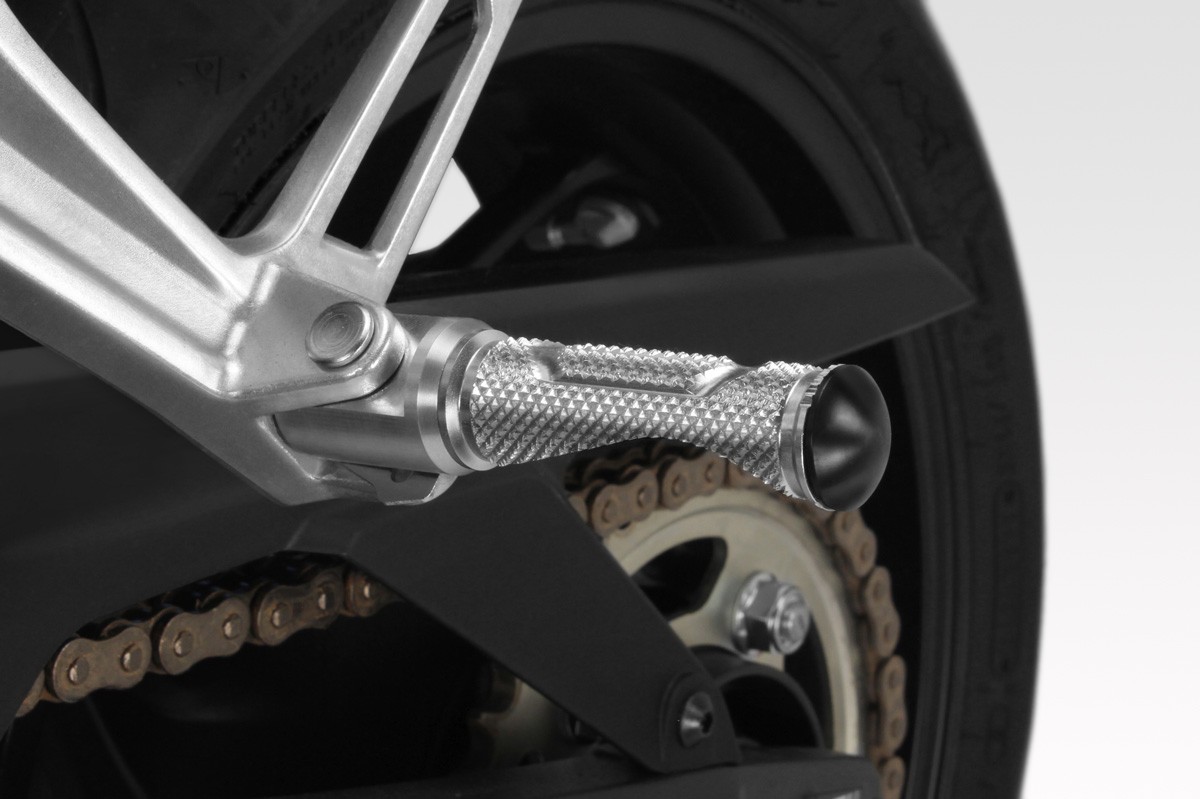 Pedane richiudibili realizzate in alluminio dal pieno con terminale in Nylon.