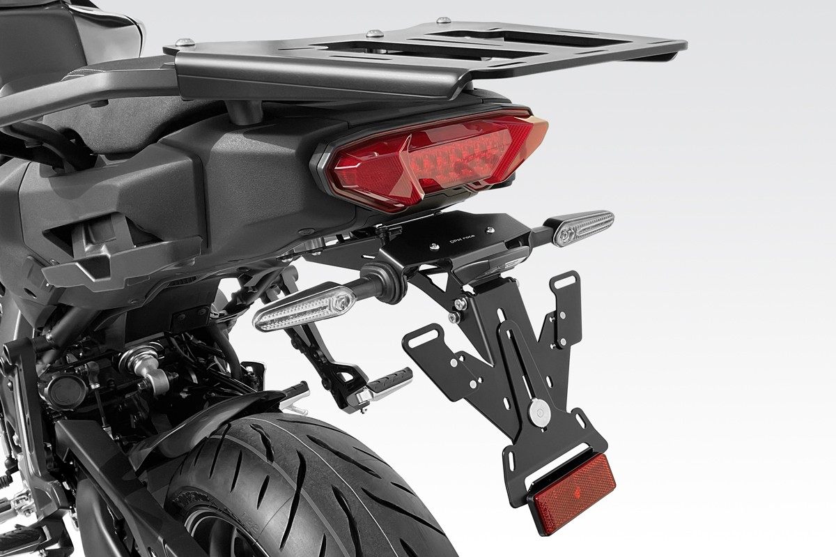 L'ultima versione viene fornita con il piatto targa INTERNATIONAL, completamente regolabile per tutte le targhe del Mondo (Italia compresa).