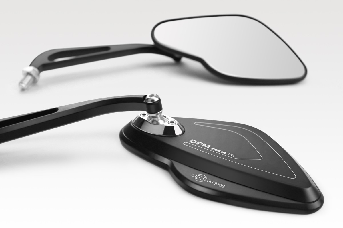 Kit completo di specchio destro e sinistro, covers per chiudere i fori lasciati dagli specchi originali, supporti, minuteria ed istruzioni di montaggio.